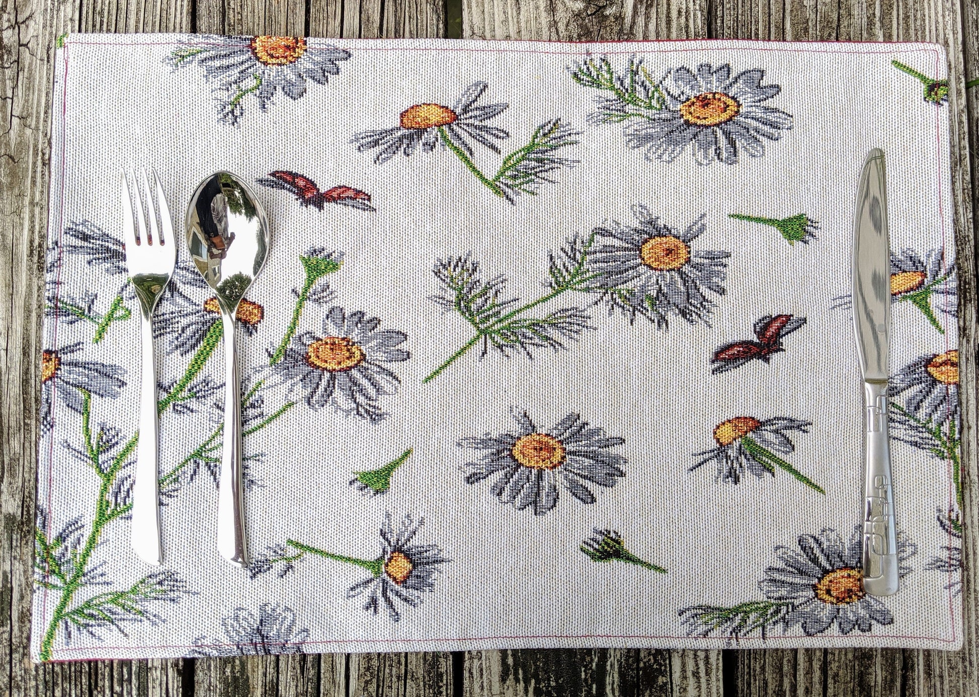 Tache Floral Daisies Ladybugs Woven Tapestry Placemat Set (18114)