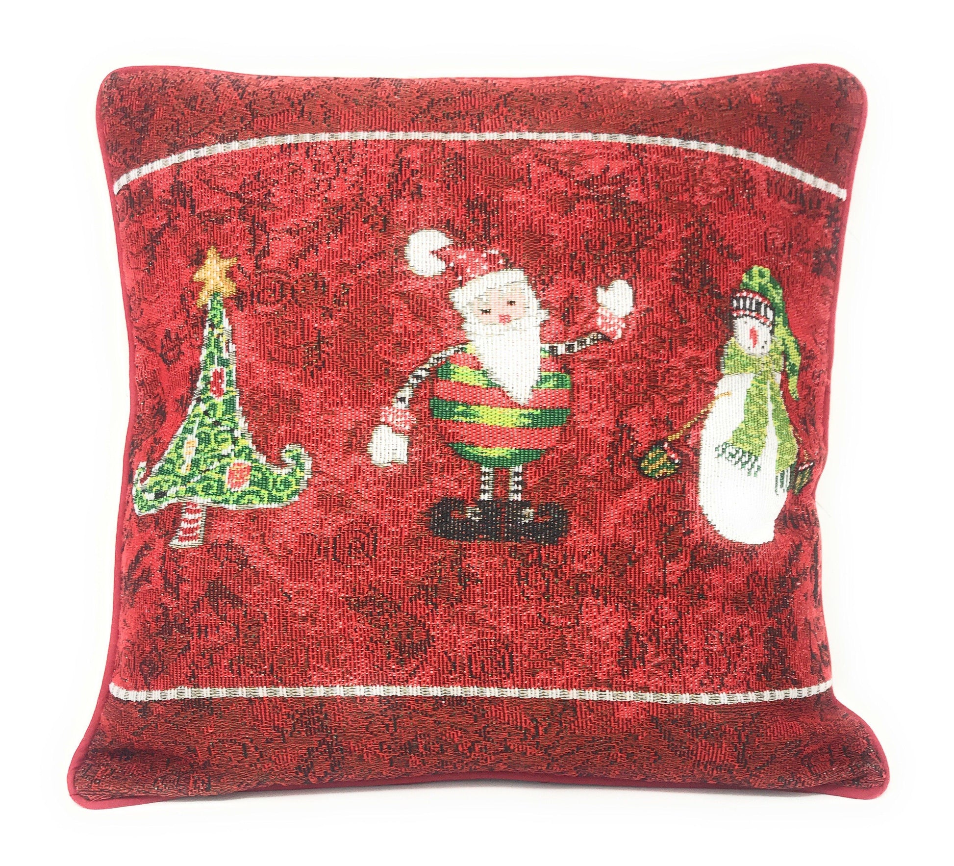 Invite the jolly old st. nick into your home for the holiday parties with our?Here Comes Santa?cushion cover. This design is perfect for an antique, traditional style home?living room that is in need of jolly holiday decor. Use this traditional vintage festive?pillow cover to liven up your winter Christmas home decoration. This?cushion cover features a happy Santa Claus with his snowman friend and a Christmas tree to complete the scene. Tapestry/needlepoint style made with sturdy woven fabric will last you for many seasons to come.