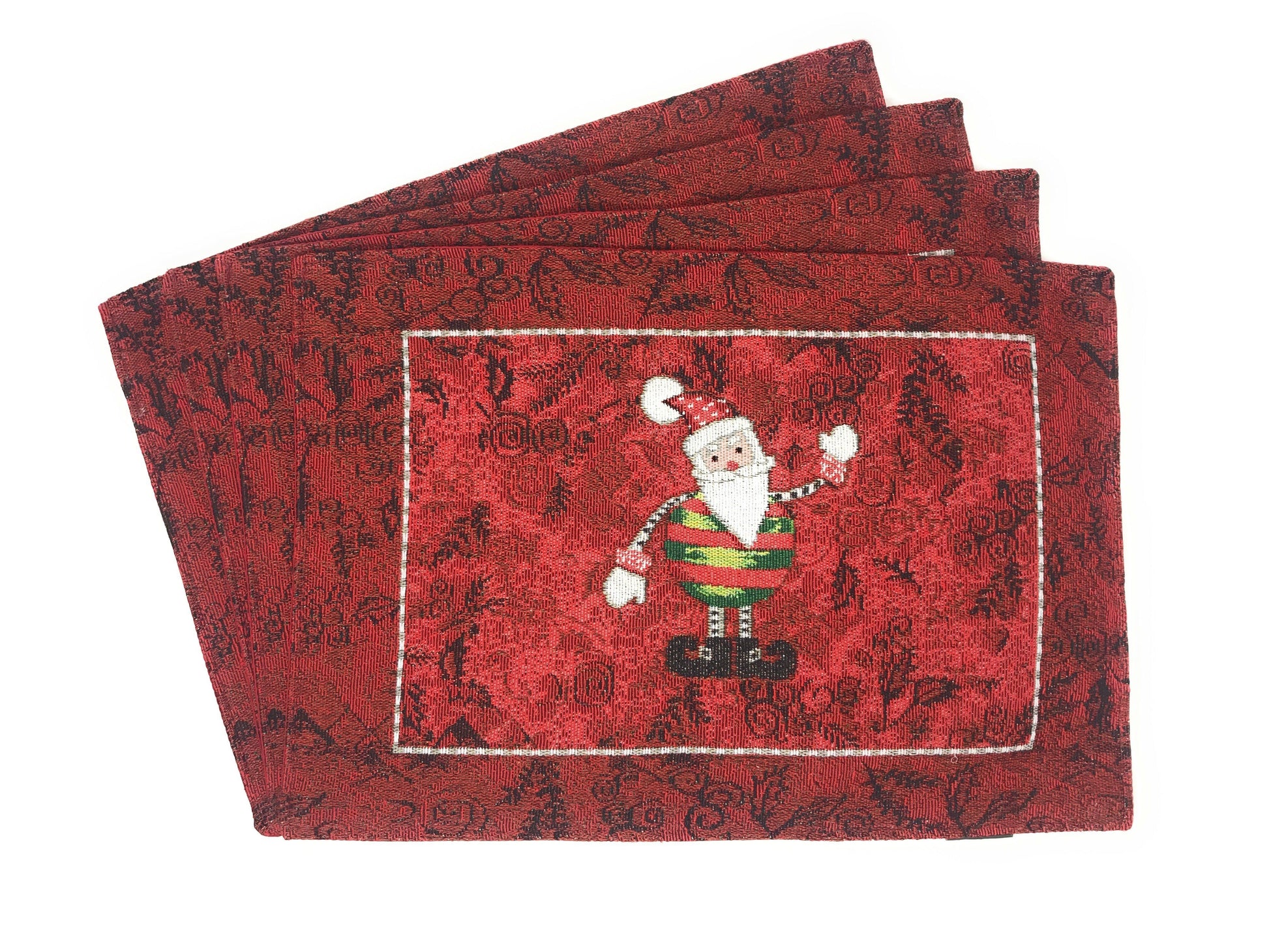 Tache Here Comes Santa Claus Vintage Holiday Woven Tapestry Red Christmas Placemat Set of 4 (8577PM)